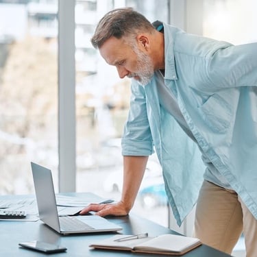 Some of the main reasons people suffer from back pain include muscle strain or ligament sprain; overuse such as repetitive bending or twisting; long periods of standing; poor posture or ergonomics such as slouching; herniated or bulging discs; sciatica; pinched nerves; osteoporosis; being overweight; a sedentary lifestyle….and the list goes on.
